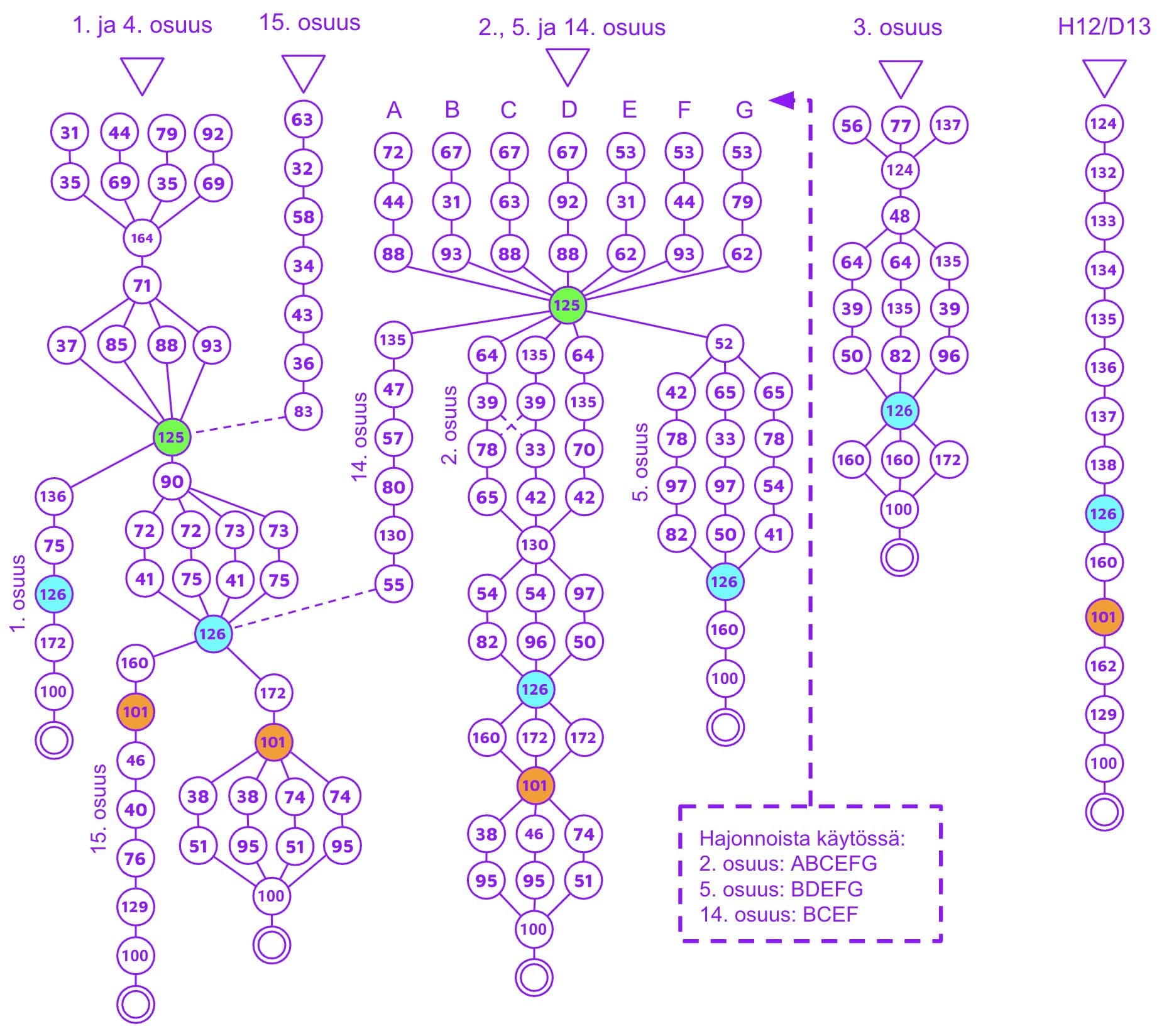 Viestissä nähtiin hienoja suorituksia vaativassa maastossa, virheiltäkään ei aina vältytty. Viestin hajontakaaviota katsoessa, ei väärälle valinnalle päätyminen ole kovin mahdotonta. 🙂