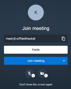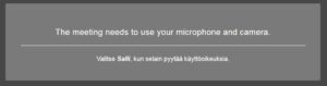 Ohjelmisto saattaa latautua hetken, joten odota rauhassa lautautumista. Liity kokoukseen (Join meeting) kirjaamalla nimi ja painamalla ”Join meeting”. Voit pistää kamerasi ja mikrofonisi päälle ohjelman asetuksista.